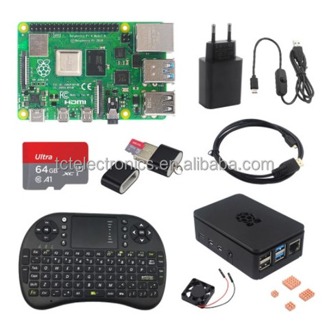 Raspberry Pi 4 طقم لوحة مفاتيح وماوس + كابلات + مصدر طاقة + بطاقة SD + حافظة لسيارة Raspberry Pi 4 طراز B