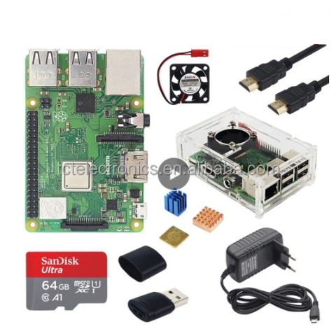 Raspberry Pi 3 Modelo B + Kit + funda acrílica + adaptador de corriente + tarjeta SD de 32/64GB + disipador térmico para Raspberry Pi 3 B +